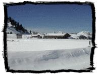 Die Hütte befindet sich ganz oben am Hornberg auf 1810 müM direkt nebem dem Schneekanonen-Speichersee. Das Plateau bietet eine einmalige Aussicht. Ca. 300m entfernt befindet sich das Berghotel Hornberg, wo auch geduscht werden kann. Ein kleiner Abendspaziergang zu einem Dessert ist auch eine willkommene Abwechslung.
