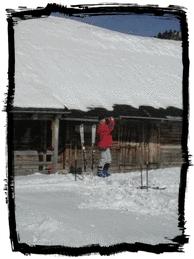 Einige Jahre gibt es weniger Schnee, einige Jahre mehr. Die Bergbahn- Mitarbeiter helfen gerne und drehen eine Runde mit dem Pistenbully um die Hütte. Vielleicht kommt der eine oder andere gerne mal zu einem Kafi vorbei? Es gab auch schon Jahre, in welchen ein Tunnel gegraben wurde, um den Eingang der Hütte freizumachen...